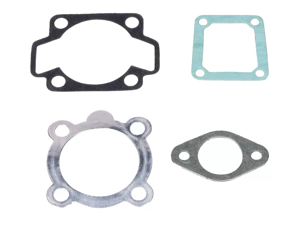 Der Satz besteht aus: Kopfdichtung, Fußdichtung, Abgaskrümmerdichtung und Ansaugstutzendichtung