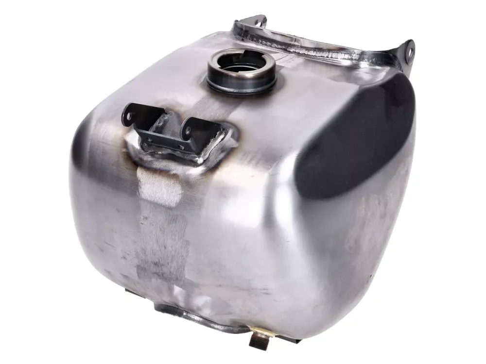 Benzintank / Kraftstofftank roh, blankes Metall in OEM-Qualität, vorbereitet für M16x1mm Benzinhahn passend für Simson Motorroller SR50, SR80. Tankdeckel und Benzinhahn bitte separat bestellen.