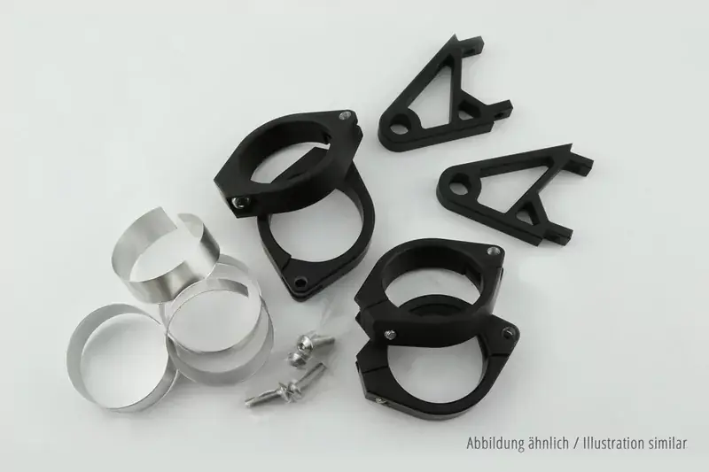 Mit diesem hochwertigen Lampenhaltersatz gestalten Sie Ihre Frontpartie sportlich und funktional zugleich. Das präzise verarbeitete Aluminium sorgt für hohe Stabilität bei geringem Gewicht. HIGHSIDER steht für Qualität, Funktionalität und stilvolles Design – perfekt für Ihr individuelles Custom-Projekt.