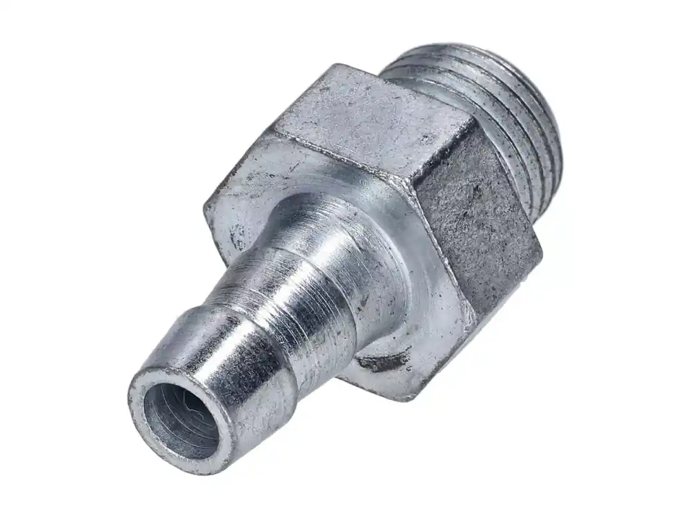 Anschlussstück / Schlauchanschluss für DDR-Benzinhahn. Ein solcher Benzinhahn ist bei vielen verschiedenen Simson Mopeds, Mokicks, Gartengeräten oder Motorgeräteträgern verwendet worden, unter anderem bei Simson S50, S51, S53, S70, S83, SR50, SR80, SR4-1, SR4-2, SR4-3, SR4-4, KR51/1 Schwalbe, Star, Sperber, Spatz, Habicht.