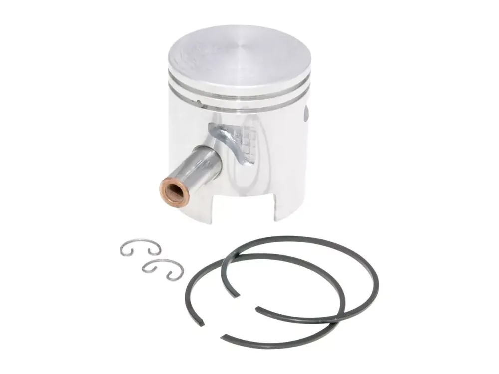 Polini Übermaßkolben mit 43,4mm für den 63ccm Polini Grauguss Zylinderkit für 50ccm Piaggio/ Vespa Mofas mit 10mm Kolbenbolzen. Der Kit enthält den Kolbenbolzen, 2 Kolbenclips und 2 Kolbenringe.