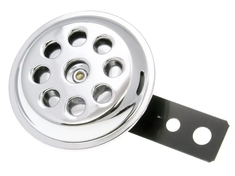 Roller, Moped & Motorrad Hupe mit 70mm Durchmesser für 12V Bordnetz. Lieferung mit Halterung wie abgebildet.