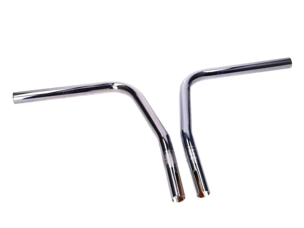 Verchromter 2-teiliger Lenker passend für Peugeot 103, MVL und Vogue Mofa Modelle. Der Artikel wird im Set bestehend aus Lenkerseite links und rechts geliefert.
