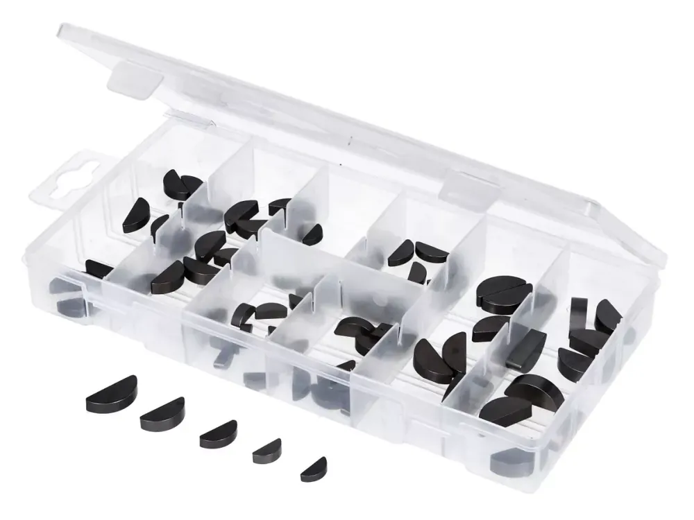 80-teiliges Halbmond-Sortiment. In den entsprechenden Maßen können diese Keile / Scheibenfedern für die Montage an Kurbelwellen, Lichtmaschinen, Kupplungswellen, Antriebswellen und vielem mehr verwendet werden.