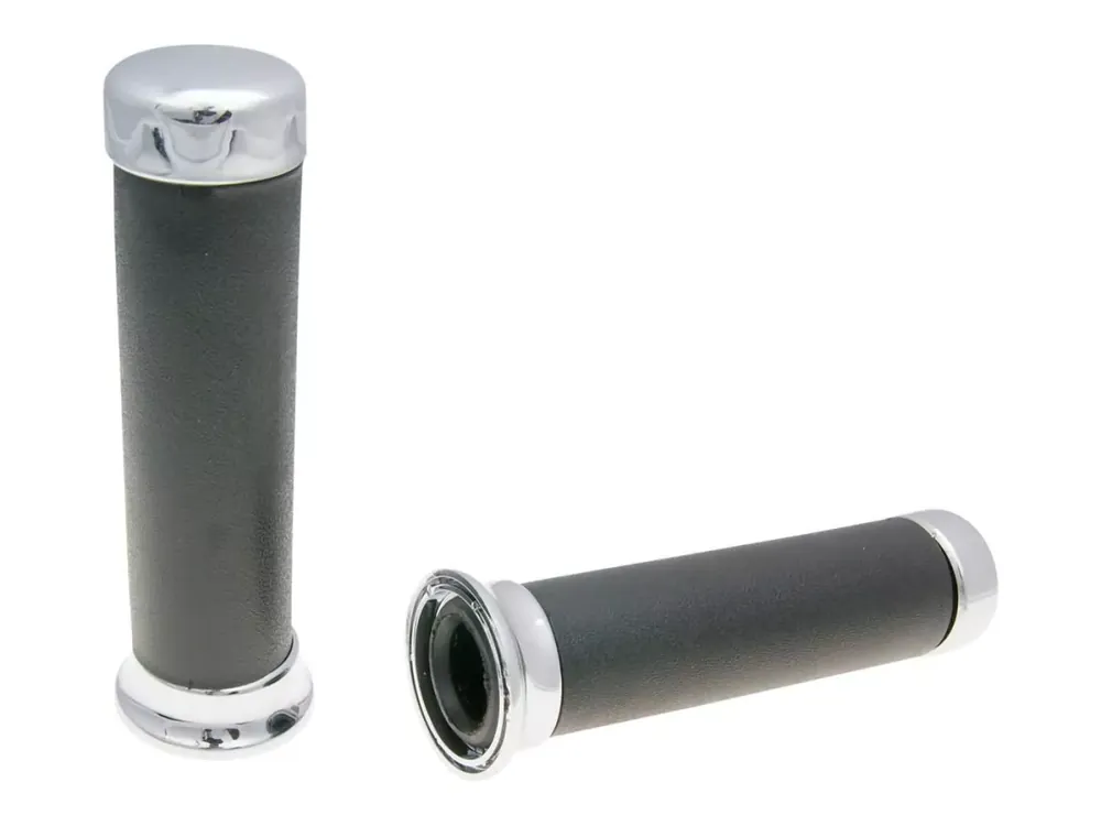 Domino On-Road Griffgummis mit verchromter Endkappe für alle Roller, Schaltmopeds und Quad oder ATV Modelle mit Drehgas.