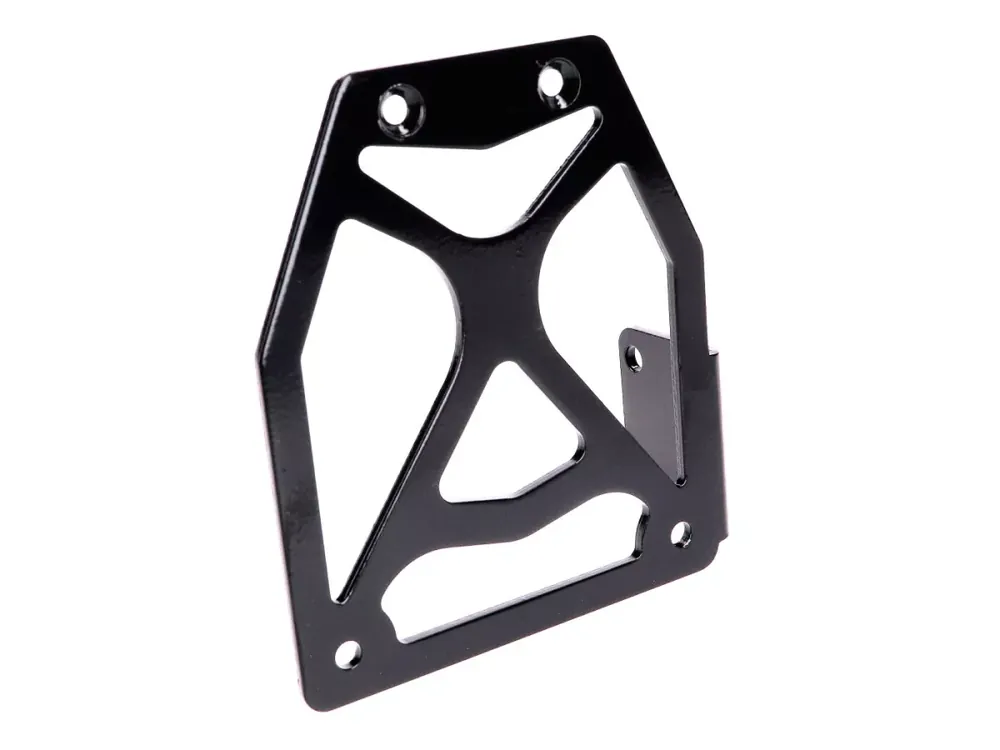 Universale 100mm x 116mm große Trägerplatte / Halterung für das Nummernschild. Diese Kennzeichenhalterung wird in Verbindung mit dem Trägerblech 40597 für Piaggio oder 40598 für Minarelli benötigt, um das Nummernschild seitlich am Fahrzeug befestigen zu können.