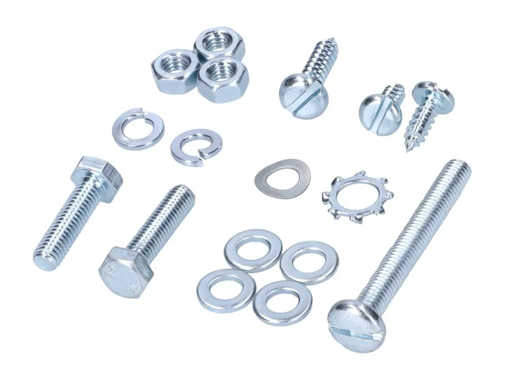 Ein Satz Normteile für das Gehäusemittelteil: Batteriehalter, Hupe, Seitendeckel und Schließhaken passend für Simson S50, S51, S53, S70, S83.