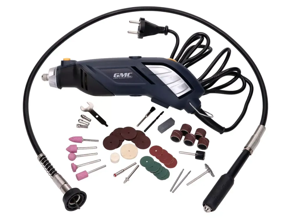 Der 135W-Motor ist zwischen Drehzahlen von 15.000 bis 35.000U/min variabel. Die große Auswahl diverser Aufsätze ist für vielseitige Anwendungen und Materialien gedacht. Die Stifte werden über die unkomplizierte Spindelarretierung gewechselt. Dieses Rotationswerkzeug ist aufgrund der handlichen Konstruktion und ergonomischen Bauweise für schwer zugängliche Bereiche sehr gut geeignet und bietet hohen Benutzerkomfort auch bei längerem Einsatz.