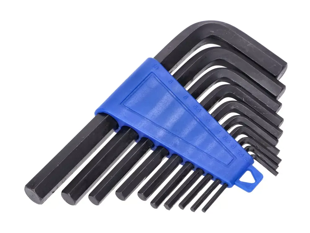10-teiliger Satz Innensechskantschlüssel inklusive Kunststoffhalter.