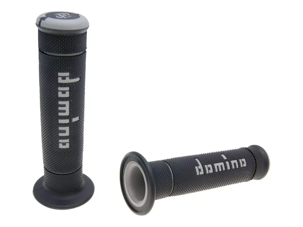 Zweifarbige Trial Griffgummis von Domino für alle Motorroller, Schaltmopeds und Quad oder ATV Modelle mit Drehgas.
