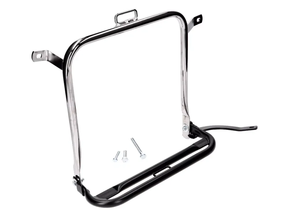 Verchromter Gepäckträger aus Metall für die rechte Seite (in Fahrtrichtung) passend für Simson Moped / Mokick S50, S51, S70.