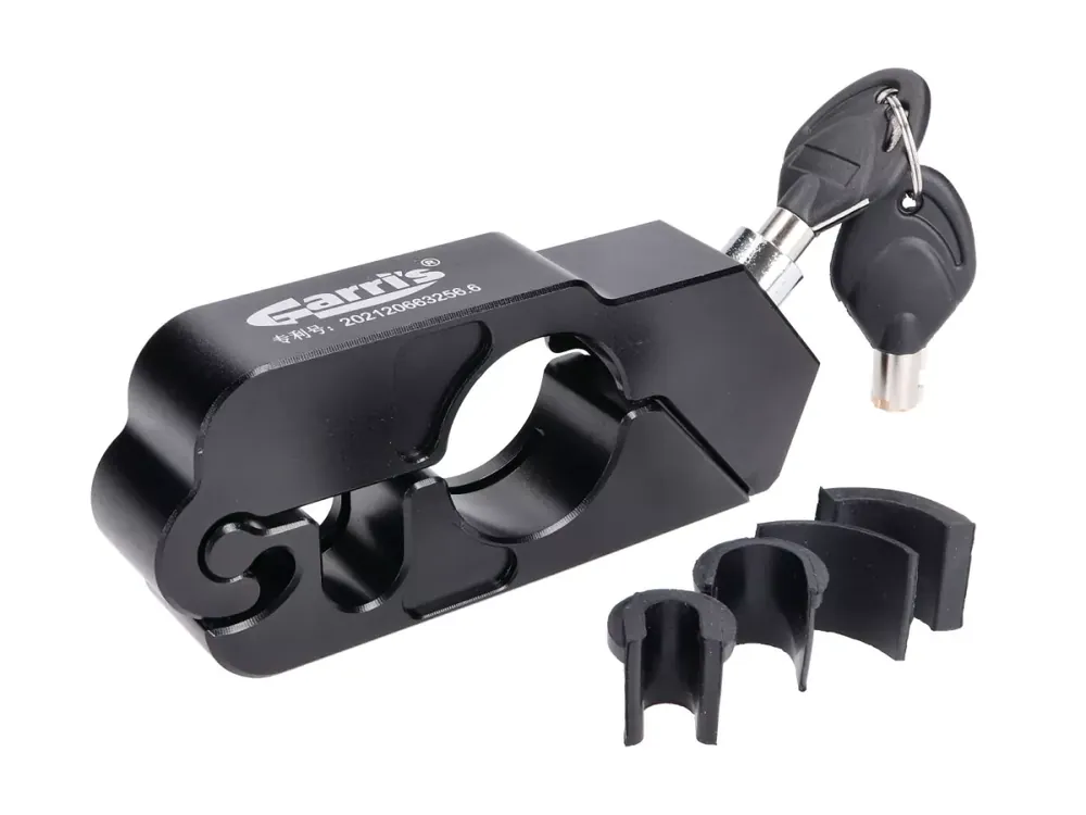 Wegfahrsperre / Schloss Gas- / Bremsgriff Aluminium schwarz für Motorroller, Motorrad Echt